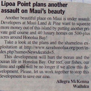 Copyright 2007-2008 Save Honolua Coalition. All rights reserved. Design By: Maui Photography